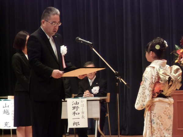 昨日、市生涯学習フェスティバルの会場で表彰式が行われました。