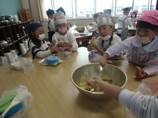 1年生が先日収穫したサツマイモを調理していました。