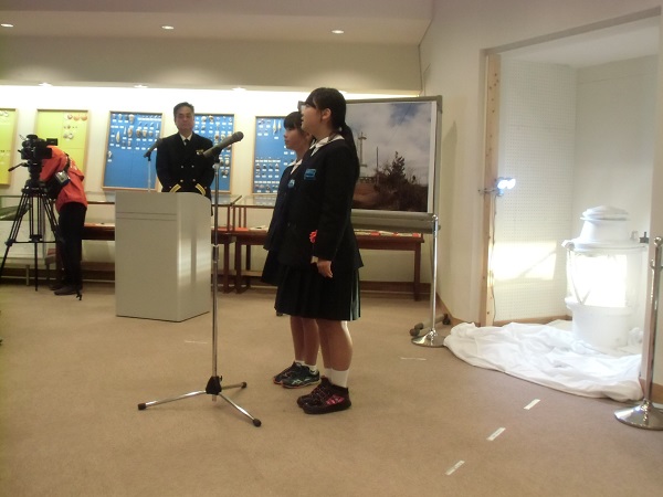児童代表として吉田さんと高畠さんが白尾灯台に送る言葉を述べました。