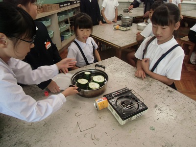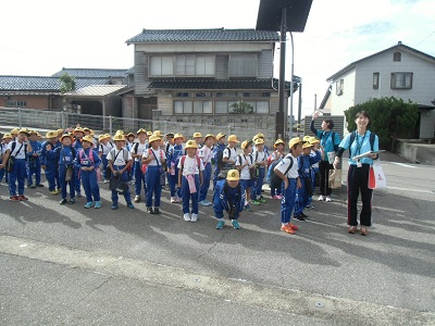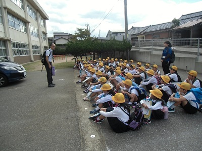 学校園にはフジバカマの花が5分咲きとなっており、1年生が植えたサツマイモも収穫間近となっていました。 花をよく見ようとフジバカマに近づくと・・・