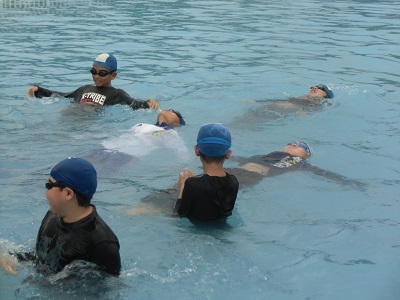 上着に空気を入れて浮く練習