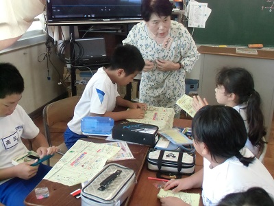 5年生の家庭科の時間に5名の裁縫の先生に来ていただき、手縫いの基本を習いました。