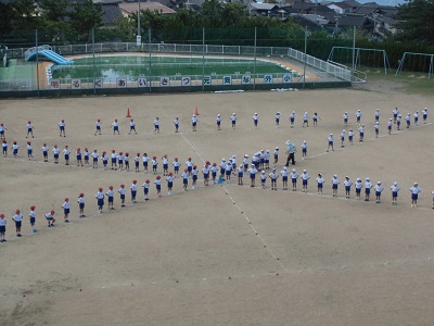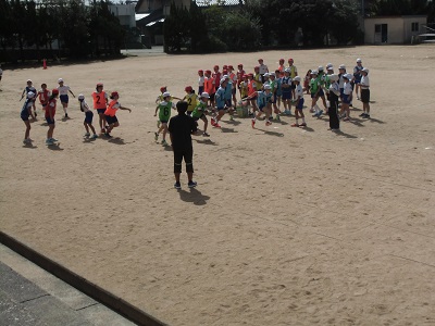 応援合戦の練習を運動場で行いました。