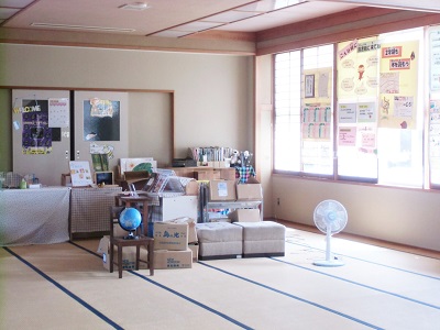 和室が仮の図書館になります。9月から貸し出しできるように夏休み中に整備していきます。