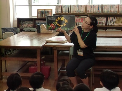 火曜日のなかよしブックタイム、水曜日のお話会に引き続き、今日は図書ボランティアの皆さんによる読み聞かせが行われました。本に親しむ機会を増やすことで、生活の中に読書が自然な形で定着して行く事を願っています。図書ボランティアの皆さん、連日の活動ありがとうございます。