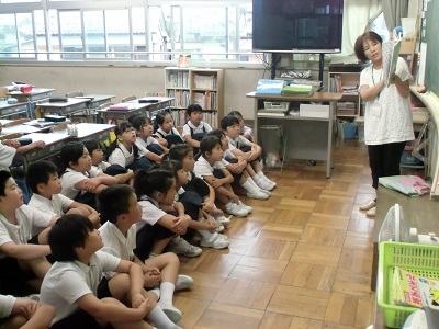 今日の昼休みに図書ボランティアの皆さんによるお話会がありました。
