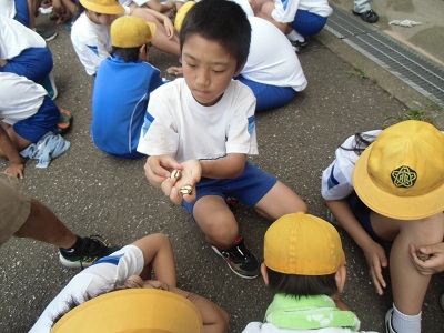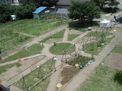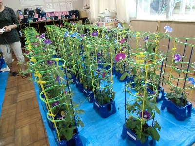 台風7号の接近に伴い、1年生のアサガオや2年生のミニトマトの鉢を避難させました。 幸い、被害はありませんでしたが、今週は梅雨前線の影響でと大雨の予想が出ています。