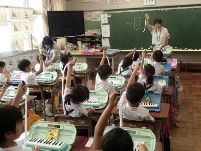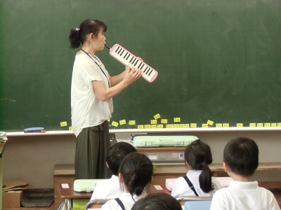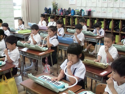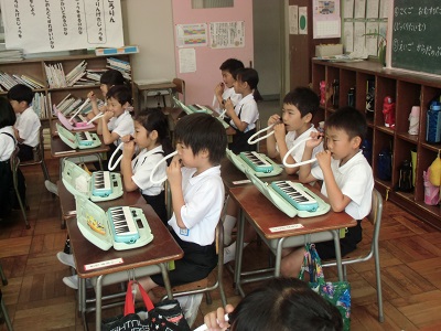 1年生が鍵盤ハーモニカの講習会を受けました。