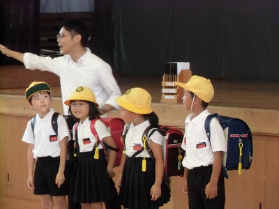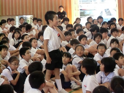 体育館への避難後、全体指導で、目撃した2年生が不審者の特徴を聴かれました。