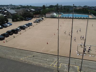 運動場の一部が駐車場になり、サッカーは1コートしか使えません。
