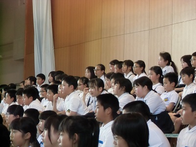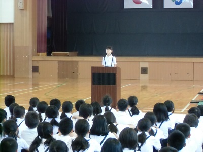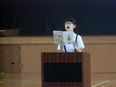 6月の全校集会に合わせて、話し方大会・器械運動交歓会リハーサルを行いました。話し方大会には3年の松谷さんが出場します。「絵本作家になりたい!」という題で、絵本との出会いやこれからの夢について松谷さんの思いが伝わってくるすばらしい発表でした。