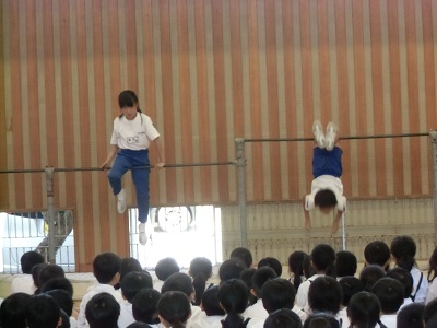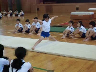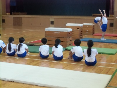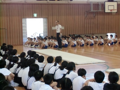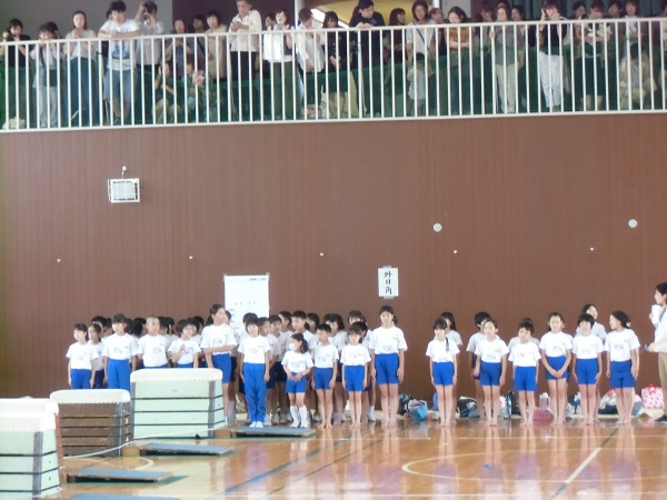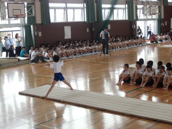 シーンと静まりかえった宇ノ気小学校体育館に「今から外日角小学校の演技を始めます」