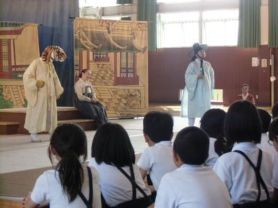 「トラの恩返し」という朝鮮の民話を東京の劇団員の方々がオペレッタで演じてくれました。笑いあり感動ありのストーリーで、子ども達も真剣なまなざしで鑑賞していました。