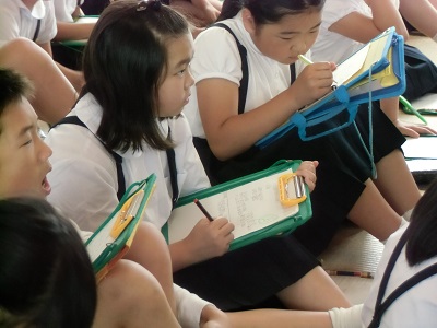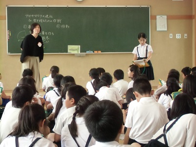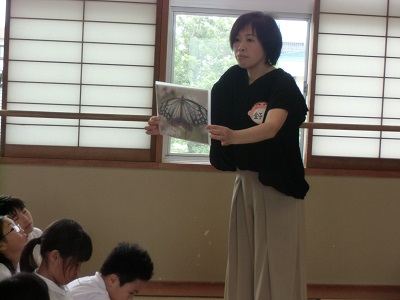 今年も5年生は総合の時間にアサギマダラについて調べています。今日は、地域の先生 金子さんに来ていただき、アサギマダラがどのように外敵から身を守るのかを中心にお話を伺いました。子ども達は、初めて知った事が多く、熱心にメモをとっていました。
