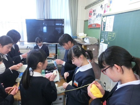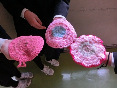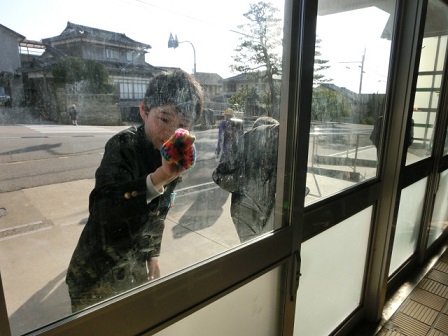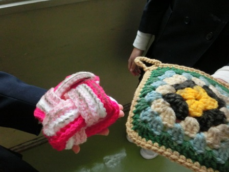 6年生が放課後に毛糸のたわしを使って窓ふきなどの奉仕作業をしてくれています。卒業前に、校舎に感謝の気持ちを表すためです。この毛糸のたわしは、昨年の「6年生を送る会」の後、地域のボランティアさんたちが、アクリルの毛糸で編んで下さった、とてもきれいでカラフルなたわしです。たくさん編んで下さったのですが、大人数の6年生には少ないということで、昼休みに何日も編んで、数を増やして、窓ふきをしてくれています。6年生、ありがとう!