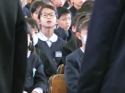 今日の3限目に体育館に行ってみると、6年生が卒業証書授与の練習をしていました。思わず参加。動きのタイミングや歩き方、証書の受け取り方など、指先に至るまでチエックを受け練習をしていました。きびきびとした動きで凜とした空気感が出るように、一つ一つ丁寧に覚えましょう。それにしても、外は気持ちよく晴れていましたが、体育館は寒かったです。この日6年生は次の時間も全体練習なので、2時間続きです。風邪など引かないよう、下着や長めの靴下(タイツ)などで、温かくして下さいね。
