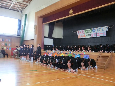 保護者の皆様、今日に至るまでの子ども達への声かけや衣装などへのご配慮をありがとうございました。子どもたちは6年生にしっかりと「ありがとう」の気持ちを伝えることができました。
