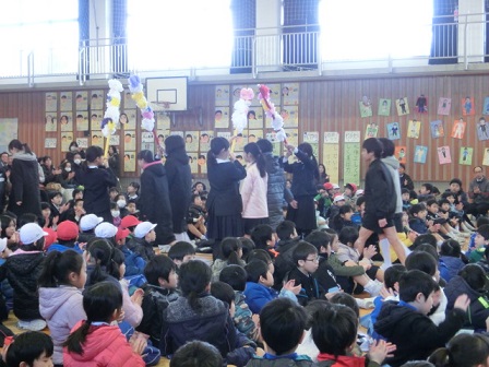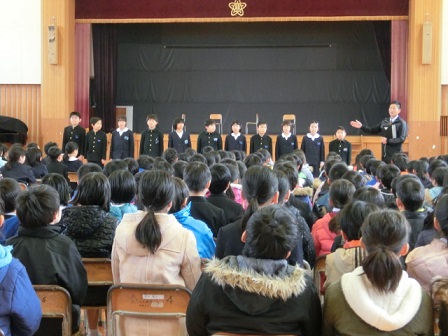 在校生の気持ちに応えようと、最後は6年生のお礼の歌。自分たちで考えた振り付けで、いとも簡単に?さらりときれいな歌声を響かせ歌って踊ってくれました。さすが6年生!