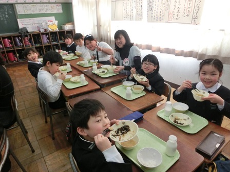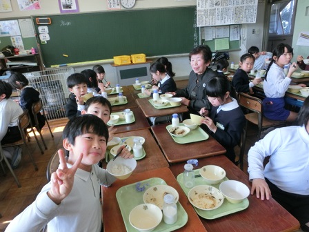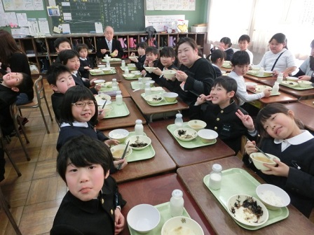23日(金)に引き続き、今日2回目の「ありがとうの給食」が行われました。いつも様々な形でお世話になっている学校ボランティアの皆さん、お忙しい中来ていただき、ありがとうございました。