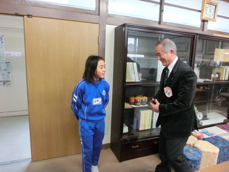 昨年に引き続き、今日に合わせて、ボランティアさんを給食に招く「ありがとうの給食」が行われました。1~4年生の各クラスの案内役の児童が、給食準備ができたら校長室に来ます。