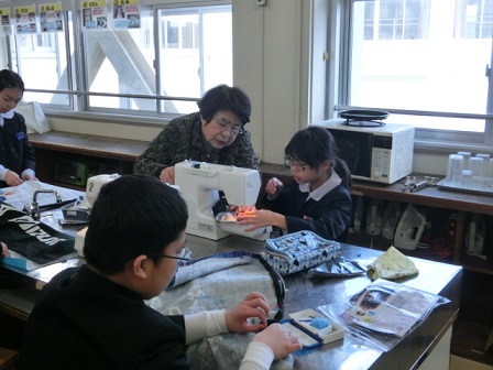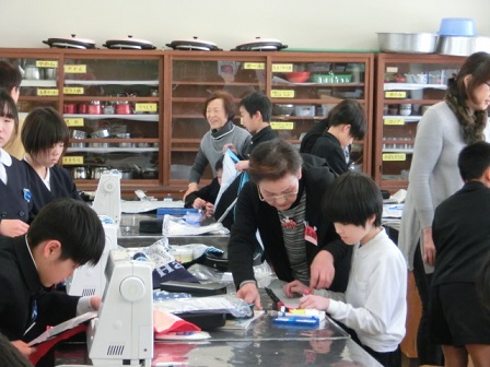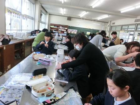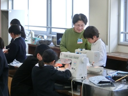 5年生の家庭科のエプロン作りに、強力な助っ人の皆さんが来て下さいました。地域のミシンボランティア?の皆さんです。8名おいでて、各グループに一人がついて下さり、ミシンのこと、縫い方のことなど、たくさん教えていただきました。お忙しい中、ありがとうございました!随分、作業がはかどりました!!