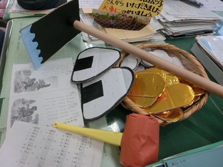 劇で使う小道具・・・支援員さんが工夫して作って下さいました。