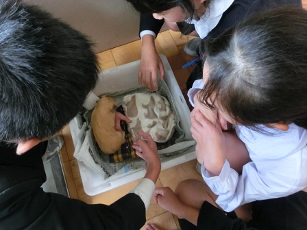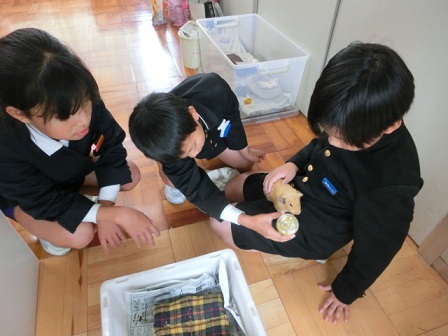 今週月曜日から、児童委員会のメンバーが前期から後期に変わりました。それぞれの委員会で、早速、新メンバーによる常時活動が始まっています。朝、整美委員会は廊下や階段をほうきでお掃除しています。企画委員会は、児童玄関であいさつ運動を行っています。体育委員会は晴れた日は、外に「コンクリートのところは走らないで」のコーンを置いたり運動場からの戻りの遅い人調べをしたりしています。そんな中、飼育委員会の人たちは何だか特に楽しそう。毎日たくさんの人がモルモットの「フィフィ君」を見に来るからです。たくさんのギャラリーがいる中、フィフィ君の糞を片付けたり、えさや水のお世話をしたりします。大切な命を預かる飼育委員会。学校の人気者のお世話をお願いします。
