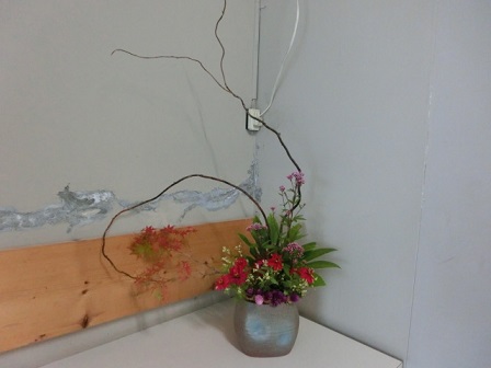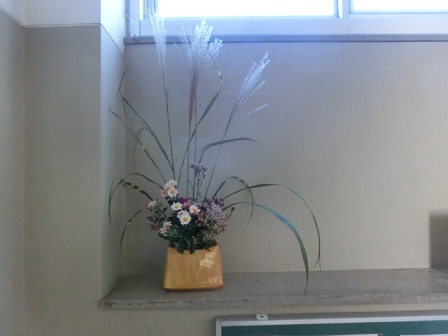 今日、地域の吉田さんがお花を生けて下さいました。サンゴミズキの赤や紅葉した葉、りんどうに秋を感じます。教育ウィークが近いということでのお花。この心遣いが有り難いです。