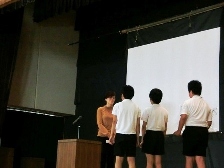 今日の2限目にメル先生とのお別れ会がありました。1年生は①「英語を教えていただきありがとうございました」②「とても楽しかったです」全員でThank you!2年生は①「英語の歌が楽しかったです」②「○○ゲームが楽しかったです」全員でI like Englishのように、学年毎に日本語と英語で感謝の気持ちを伝えました。メル先生はアメリカのシアトルに帰られた後、大学院で日本語の先生になるとおっしゃっていました。そして、日本の良さを広めたいともおっしゃっていました。メル先生、どうかお元気で。夢の実現に向けて頑張って下さい。ありがとうございました!