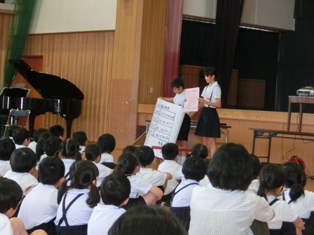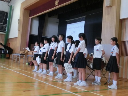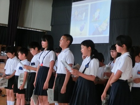 取り組んだ感想紹介が終わった後、「ピーマンマンとよふかし大魔王」の絵本の読み聞かせをしてくれました。なかよしブックタイムの打ち合わせや練習もある中、委員会の仕事もしっかり行った保健委員会の皆さん、ありがとうございました!