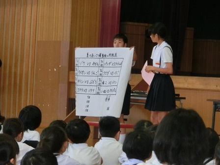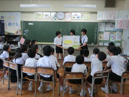 金曜日の5限目になかよしブックタイムが行われました。5年生と6年生による下級生に対する本の読み聞かせです。下級生の興味のありそうな内容だったり、大型絵本でより楽しませようとしたり、お話に関するクイズを作ったり等、どのチームも工夫して行っていました。読書の楽しさがどんどん広がるといいですね。高学年のみなさん、ありがとう!