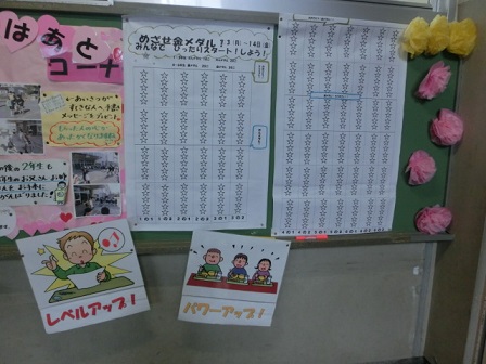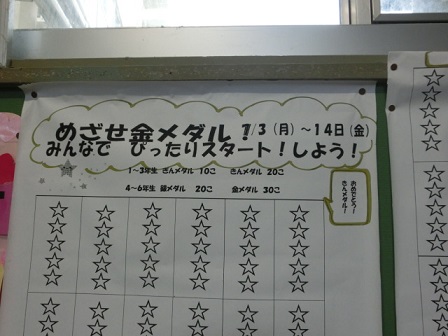 今週から「めざせ金メダル! ベル学スターを集めよう」の取組が始まりました。1学期の締めくくりを、レベルアップした授業で締めくくろうというものです。各クラスにベル学スター貯金用紙が配られ、授業開始のチャイムが鳴るまでに、「①全員の学習準備ができていること②全員そろって授業のあいさつができたこと」の2つの条件が満たされた場合、貯金用紙を塗ることができます。そして、スターの数によって学年に応じて金メダルや銀メダルとなります。いろんな企画が目白押し。まだまだ、面白い取組が続きます。