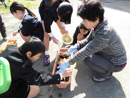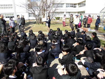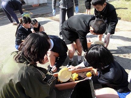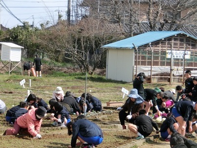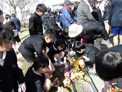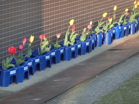 2年生が1年生の時植えたチューリップ みんなの進級をお祝いしています。