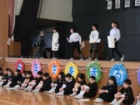 4年生:6年生のふるさと 最強のトップパッター!切れのいい歯切れのいい台詞と動きで笑いを取っていました。伸び伸びとした演技が、いい流れを作りました。