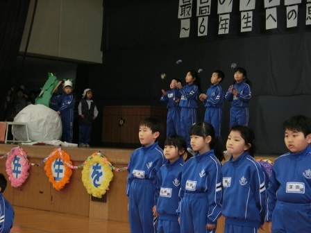 今日の2~3限に「なかよしの会(新1年生を迎える会)」が行われました。得意技の紹介や大きなかぶの音楽劇、「これはなんでしょう」のクイズや読み聞かせなど、1年生は年長さんのために一生懸命でした。