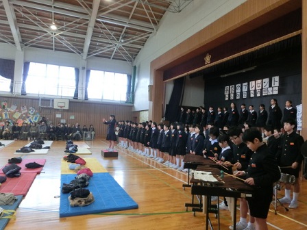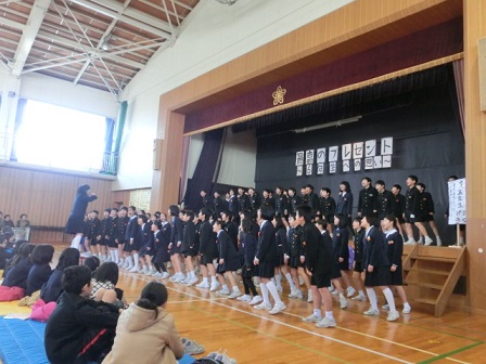 6年生:旅立ち 在校生の気持ちに応えて6年生が歌ってくれました。自分たちで考えた振り付け付です。