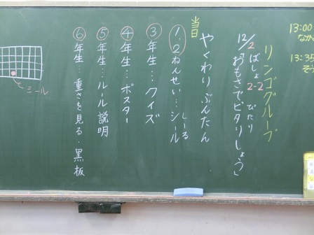 12月2日のなかよし集会に向けて、今日の昼休みに準備の会が開かれました。6年生を中心に、打ち合わせやポスター作り、道具作りを行っていました。毎年恒例のこの行事、子どもたちはとても楽しみにしていて、各学年毎に役割をはたすというめあてもあります。6年生のリードとチームワークが大切です。しっかり準備をお願いします。