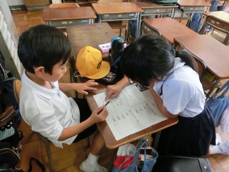昨日の放課後、3年生と4年生の教室に、5年生・6年生の頼もしい助っ人が来てくれて、勉強を教えてくれました。習う方も教える方も、すてきでした。良い関わりですね。