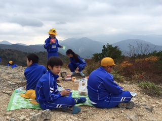 頂上で昼食。天気は何とか大丈夫だったようです。