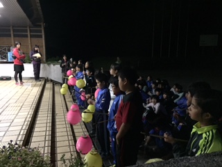 肝試し・・・真っ暗ですねぇ。提灯片手に・・・頑張れ!