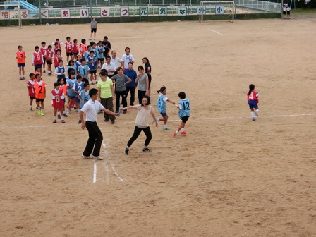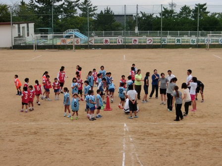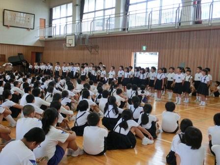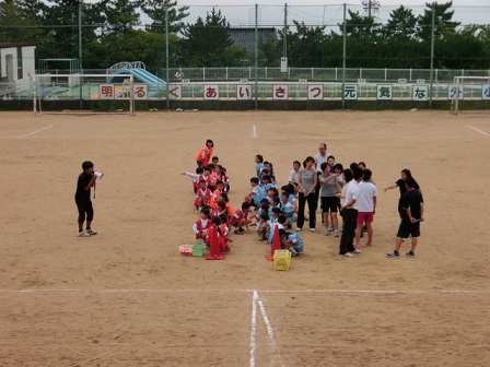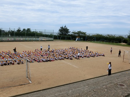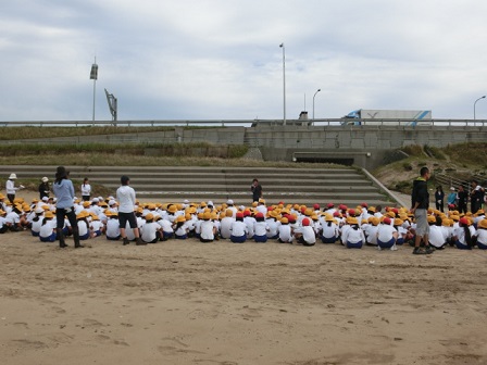 海へ行く前に、運動会のようになかよしグループ毎に整列です。