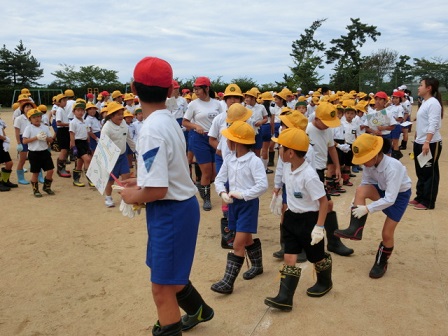朝、子どもたちはスーパー袋に長靴を入れて登校してくれました。大きな荷物でしたが、登校する姿・・・とてもありがたかったです。保護者の皆様、長靴や軍手等、ご協力をありがとうございました!
