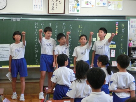 高学年が、「大きな声が出そう」と声掛けしています。