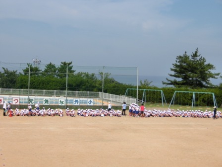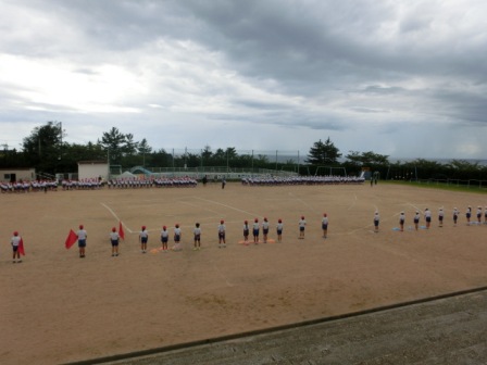 また新しい台風13号が発生したようです。明日や明後日のお天気が心配です。ところで、曇り空の下、今日は2度目の全体練習があり、開会式の通しをやってみました。一部紹介します。