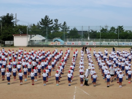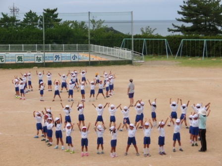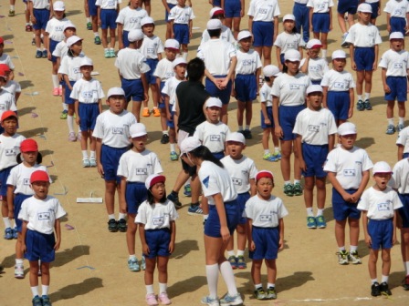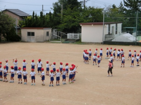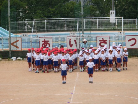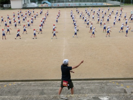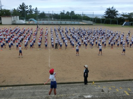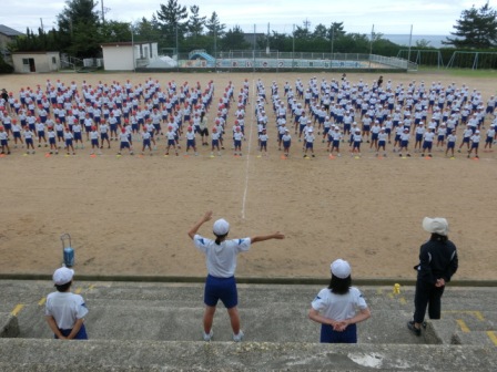 体操係も前に出て行いました。たぶんラジオ体操の特訓がまだあると思います。何しろお手本!