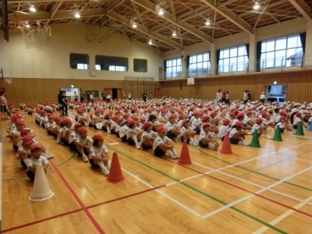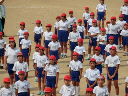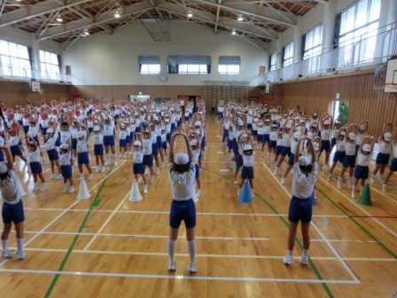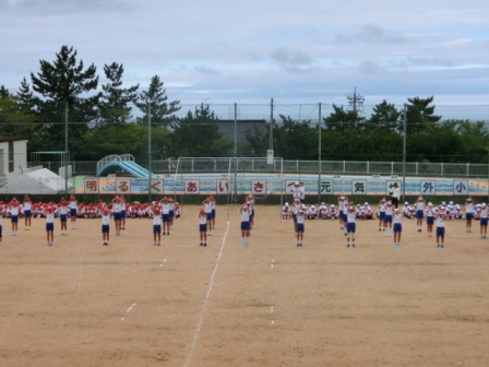 運動会練習が本格化しています。高学年は朝から下級生のクラスに行って、応援のコールや歌の指導を行っています。また、今日の2限目には初めての全体練習も行われました。