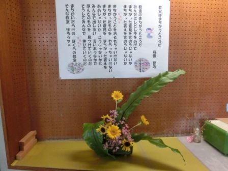 職員玄関にも、これとは別に生けて下さいました。心が和みます。感謝です。