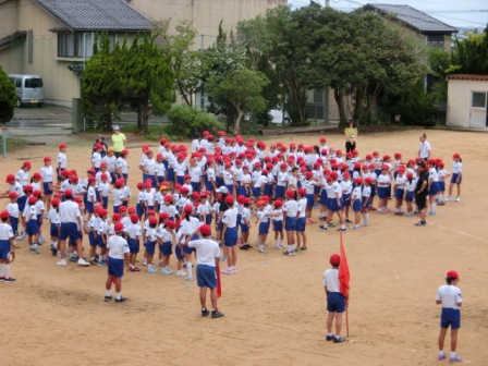 台風の大きな影響は無かったのですが、とても蒸し暑い月曜日でした。子どもたちは朝から大きな声を出して頑張っていました。運動会までの日々、疲れがたまると思いますので、十分な睡眠をお願いしたいと思います。