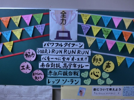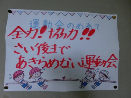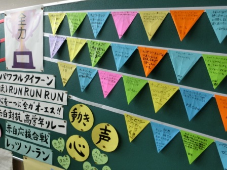 体育館からの帰りに廊下で見つけました。運動会・・・頑張ろう!!