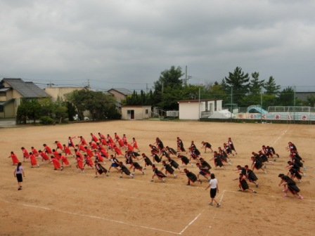 2016年9月8日 16時08分 今日の1限は何とか曇り空だったので、ラッキーだった中学年。運動場でソーランの仕上げに余念がありませんでした。「もっと低く」、「列を揃えて」の檄が飛んでいました!